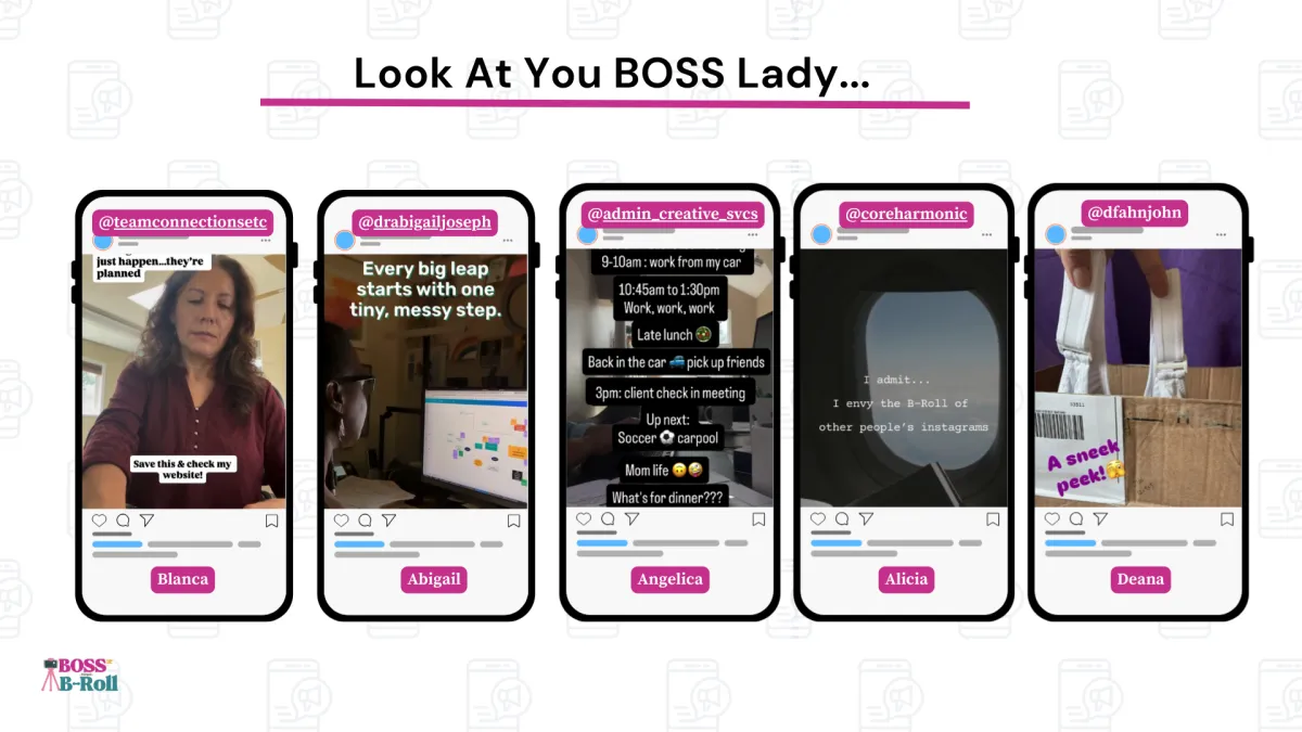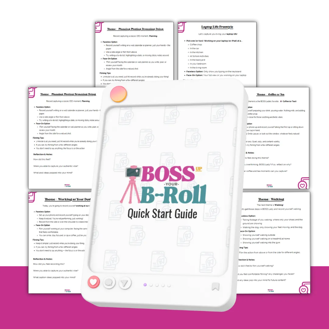 BOSS Up Your B-Roll Is The Simple, Plug-and-Play Toolkit That Helps You Show Up Online Using The Everyday Moments You’re Already Doing.