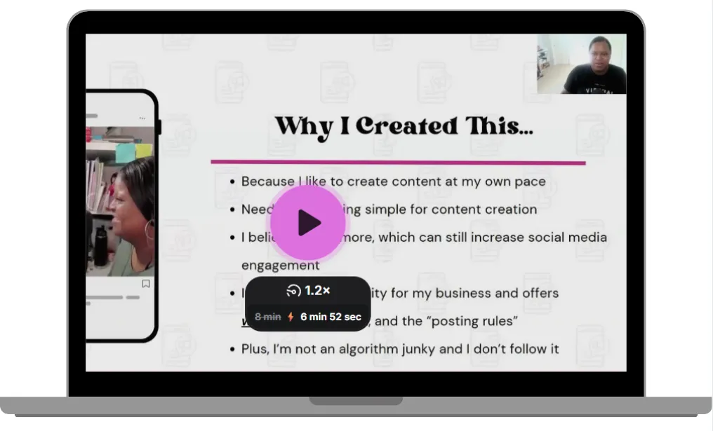 A phone-first, done-in-minutes training so you can turn your b-roll into scroll-stopping Reels, fast. No tech headaches, no perfection loops, just a clean workflow and formula that helps you get it done.